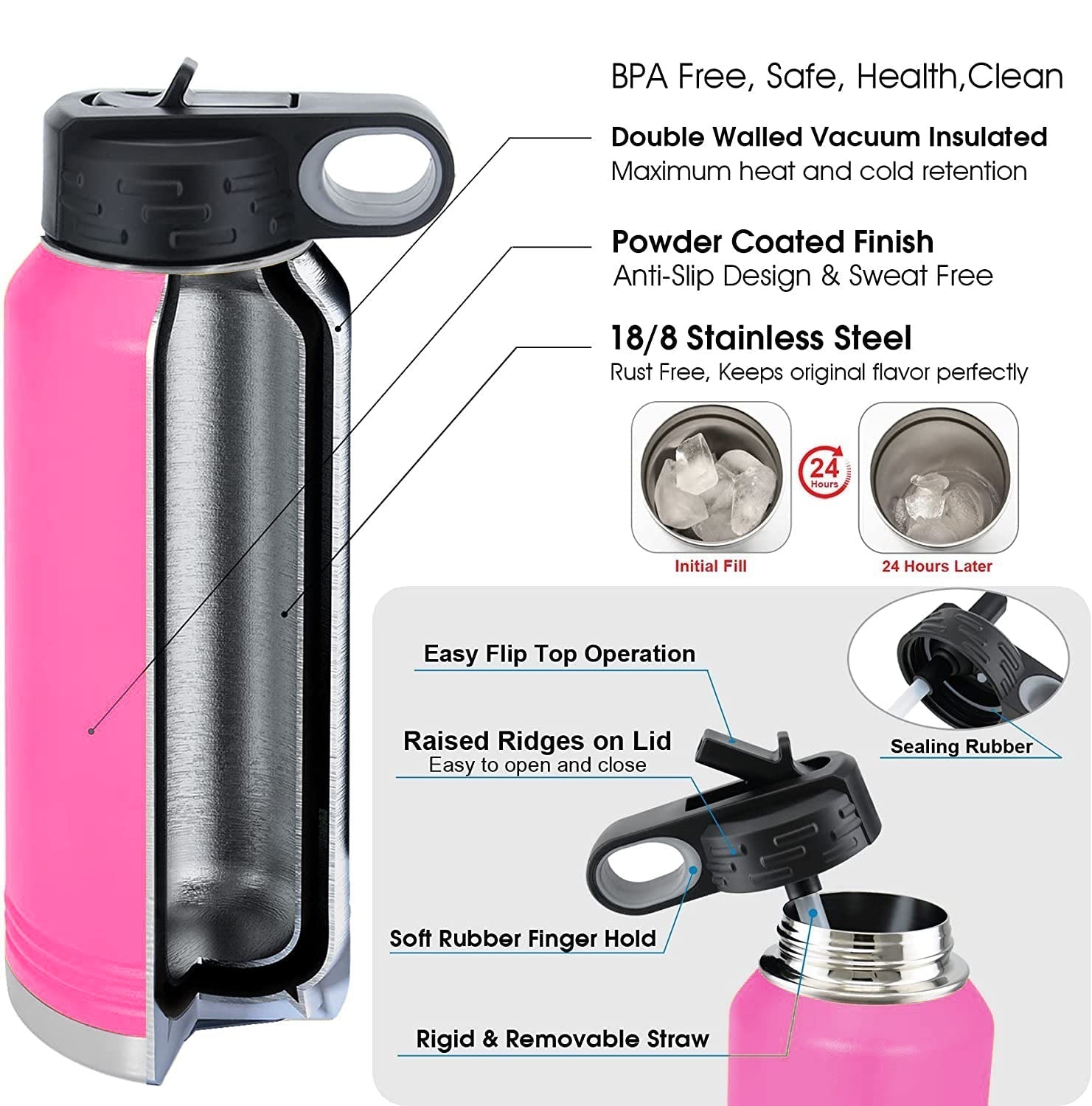 Celebrate the start of the new school year with our Laser Engraved Metal 20 oz Water Bottles. This 20 oz. Metal Water Bottles are a must-have back-to-school item. Each is professionally laser engraved in the USA. Laser engraving creates a lasting impression that will not fade or wear. We offer many colors to choose from and have the ability to include your favorite team logo. The superior hot & cold retention of the double wall insulated water bottle keeps your drink cold for 24 hours. Available in Stainless Steel and powder-coated colors, they customize beautifully and make a great incentive or personalized gift.