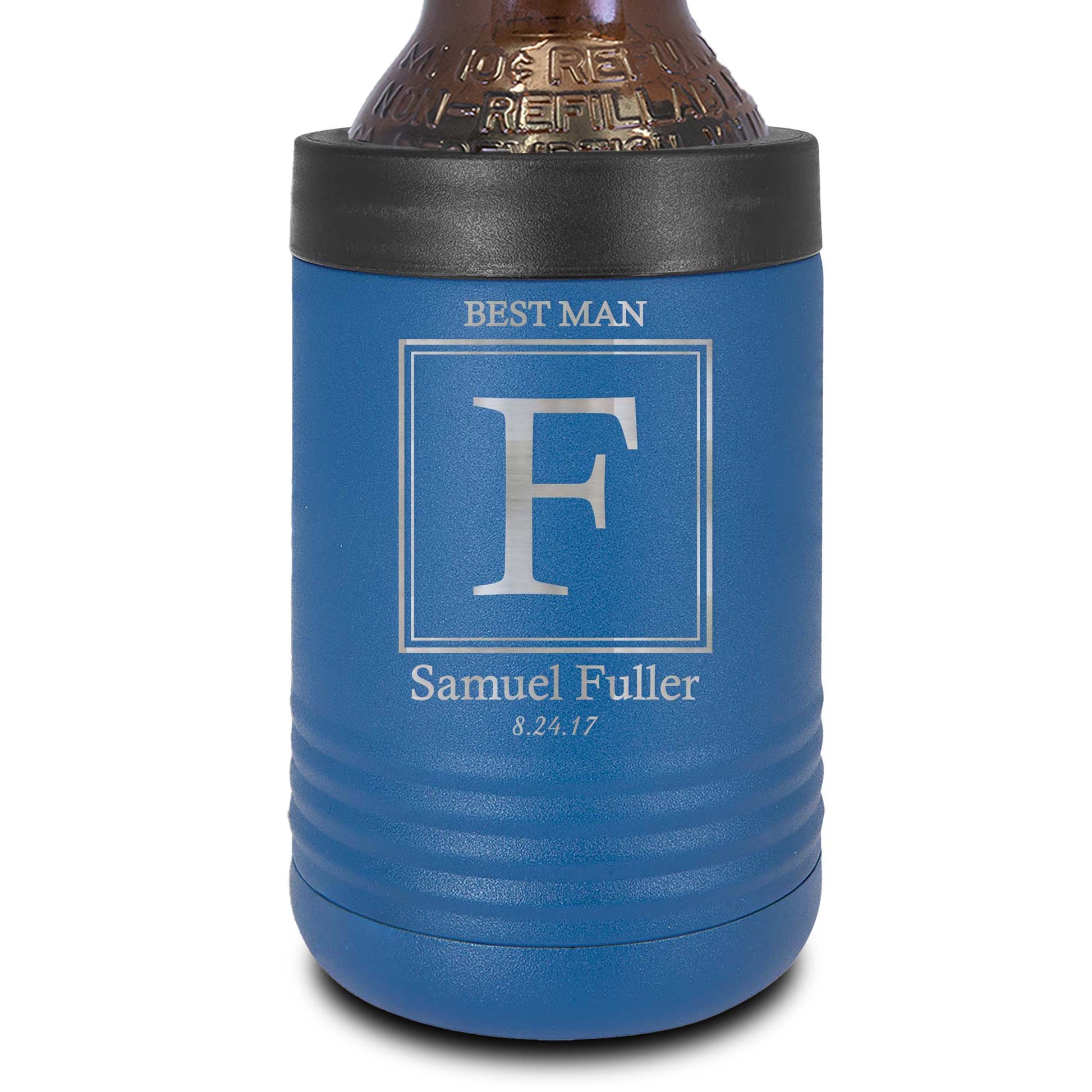This engraved stainless steel metal beverage holder keeps cans and bottles so cold for so long that you’ll have to rethink your understanding of a few natural laws. Standard 12 oz. cans and bottles fit like a glove – a glove with double-wall vacuum insulation. The load and lock gasket secures your drink in place, and no sweat design keeps your hands dry while your drink stays cold.