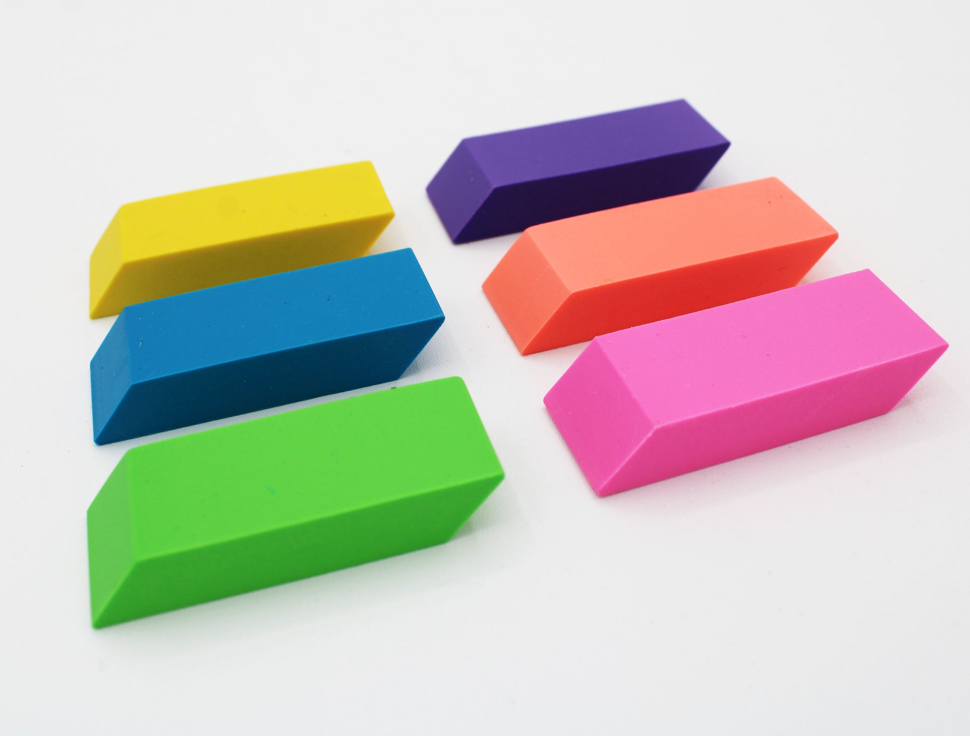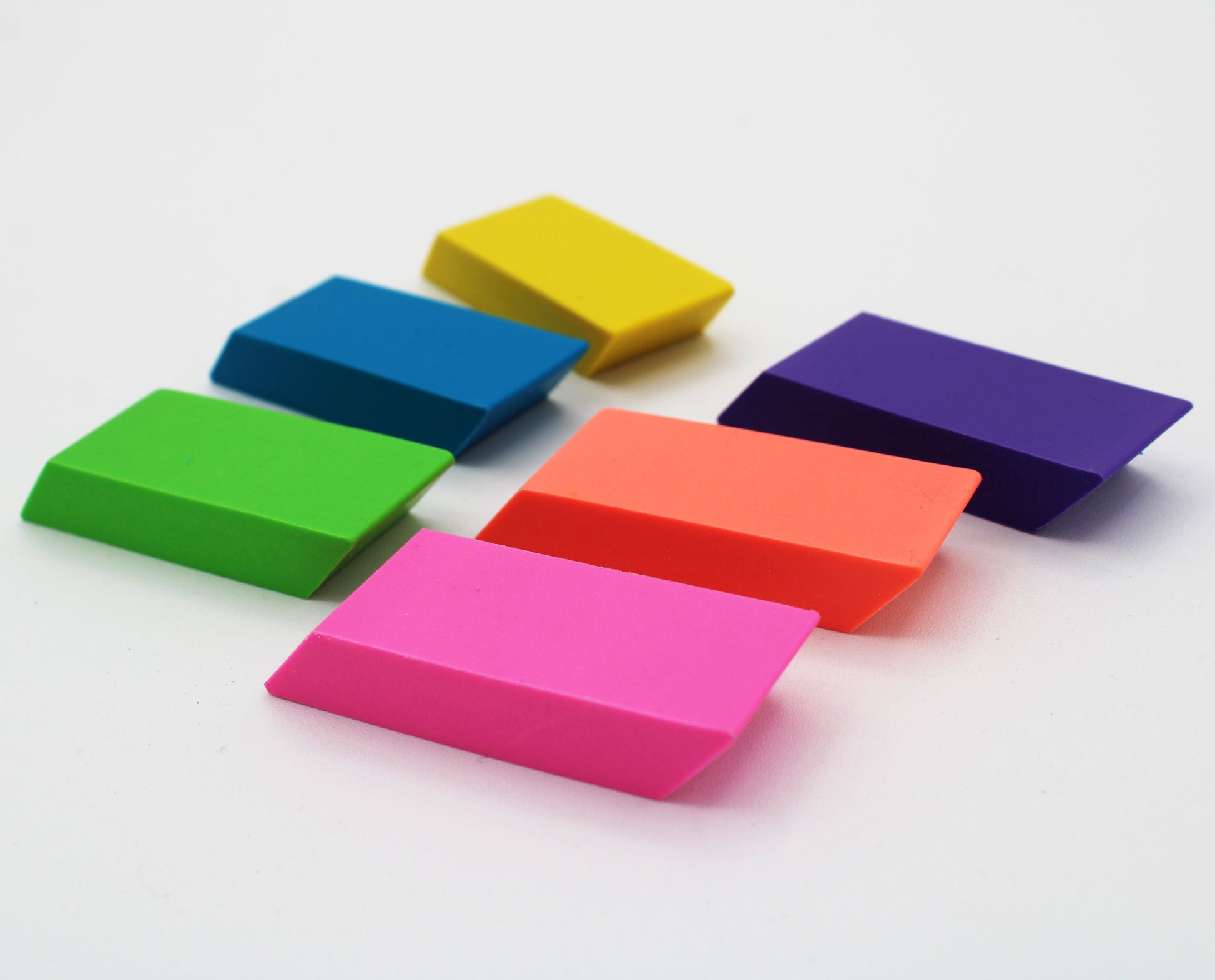 Set of 6 Multi Colored Erasers (Pink, Orange, Yellow, Green, Blue)